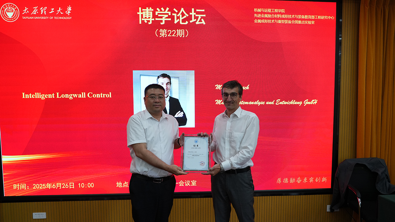 为持续深化国际合作、拓展师生学术视野,推动教育与科研国际化发展,6月26日上午,PA游戏官网入口特邀英国采矿协会会长Paul Freeman先生与德国玛珂公司副总裁Markus Krach先生来院访问交流,并开展专题学术讲座。活动在PA游戏官网入口第一会议室举行,由公司副经理丁华主持,吸引了共六十余名教师与研究生参加。作为第22期与第23期“博学论坛”学术系列活动,本次讲座聚焦智能综采装备国际先进前沿技术,内容丰富,反响热烈。
