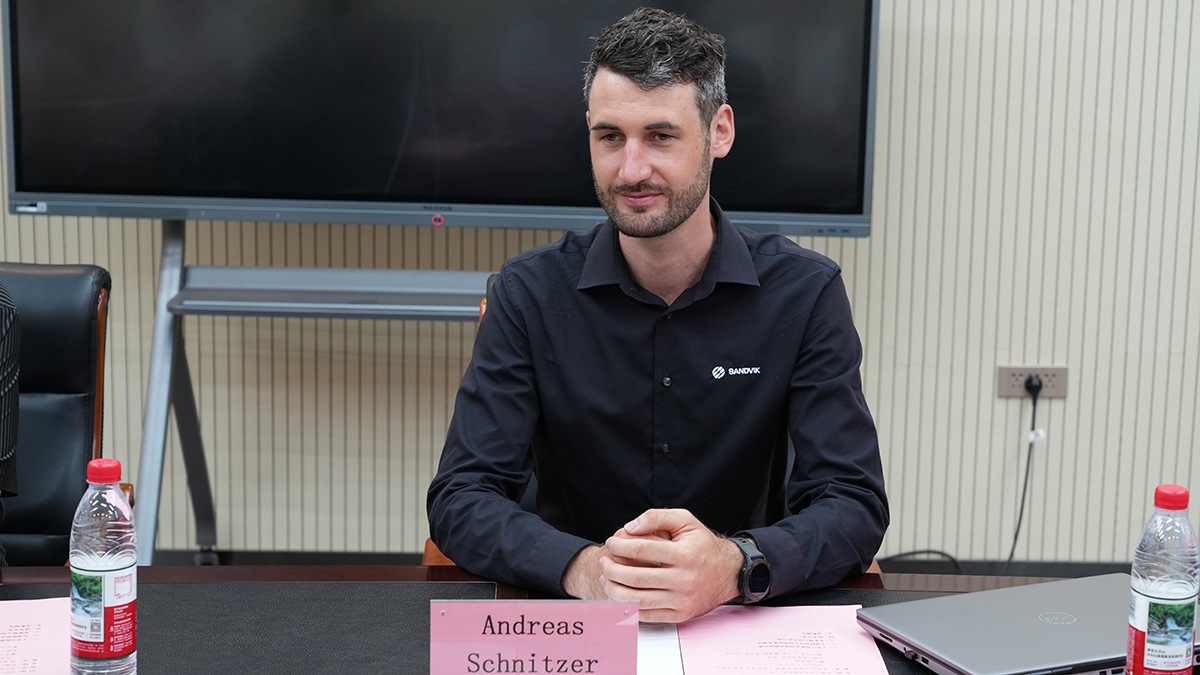 Andreas Schnitzer先生对公司的热情接待表示感谢。他表示,中国的大学具有非常悠久的历史和深厚的文化底蕴,表达了对PA视讯官方网站百年老校的敬仰和赞美之情,此次来访对于中奥文化往来具有重要意义。他回顾了自身在山特维克集团的发展经历,自2025年起常驻中国作为SA-中国公司技术支持工程师,曾为美国、加拿大、德国、俄罗斯、中国等销售区域提供全方位技术支持,并重点介绍了公司在硬岩掘进机、掘锚一体机、盾构机、隧道钻车、装岩机等矿山机械领域的等领域的全球领先技术与创新成果。他介绍到,山特维克集团是全球领先的先进产品制造商,其优势业务包括金属切削工具、采矿业设备设施、不锈钢材料、特种合金、金属及陶瓷电阻材料以及传动系统等。集团业务遍及超过150个国家,拥有41000名员工。他表示,希望未来能与PA视讯官方网站在工程应用、技术培训、国际项目联合等方面开展深入合作,推动中奥双方在矿山装备与智能制造方向的深度融合。与会教师和Andreas Schnitzer先生从锚杆支护、截齿加工、电液控系统、带式输送机制动、矿卡运输技术等方面进行了深入讨论。
