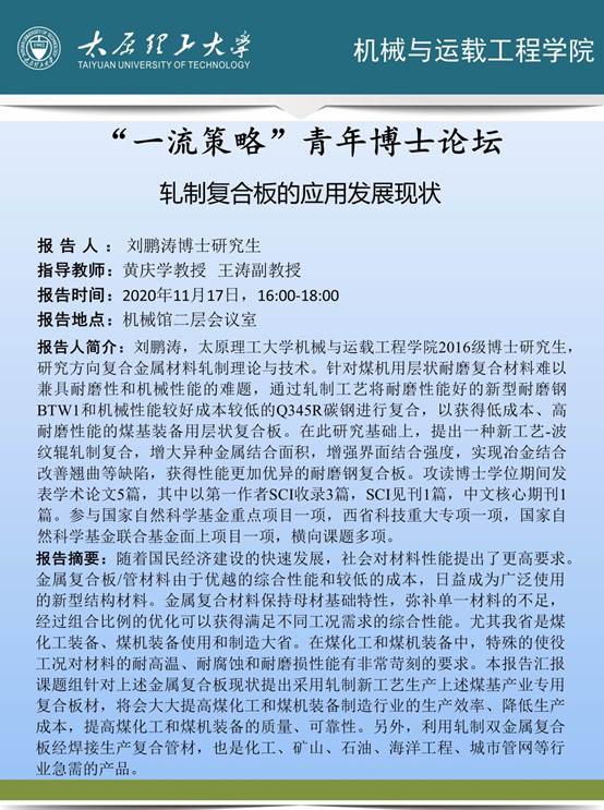 机械与运载工程公司“一流策略”青年博士讲坛开讲通知