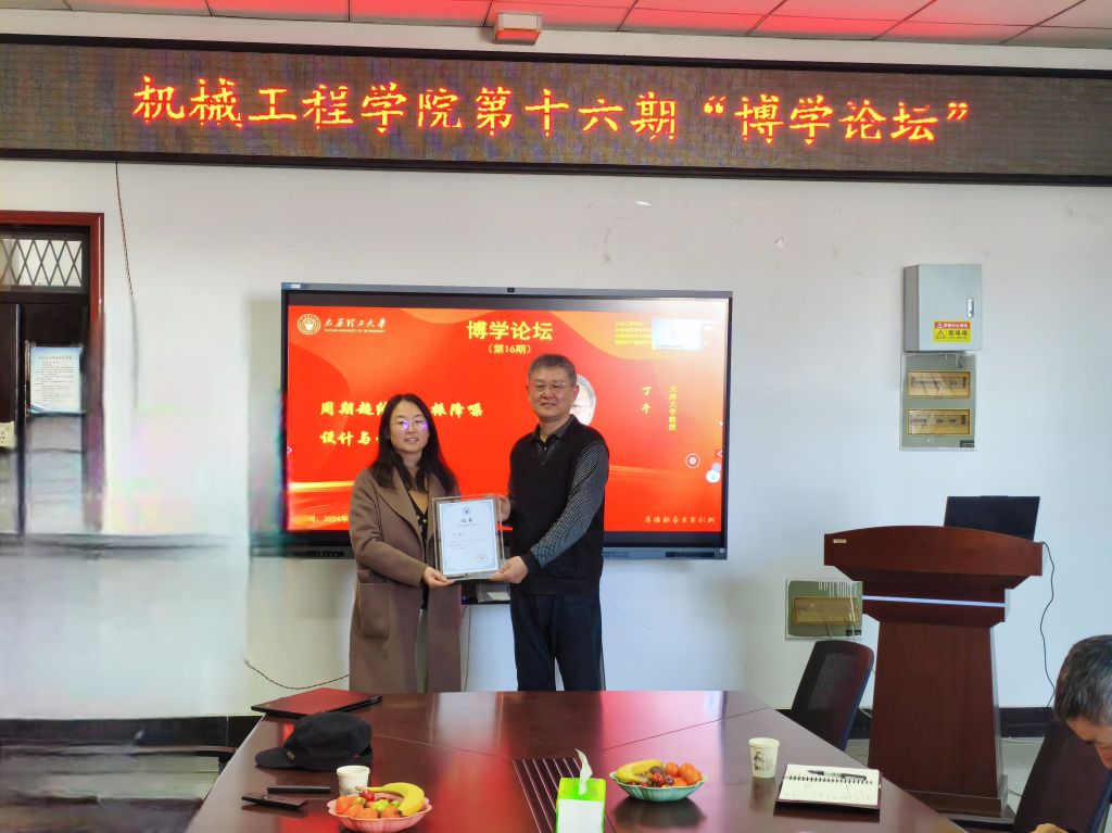 最后,庞新宇教授为丁千教授颁发了证书。本次论坛讲座有助于提升公司的科研水平和学术视野,营造良好的学术氛围,为全院师生提供更广阔的交流学习平台。
