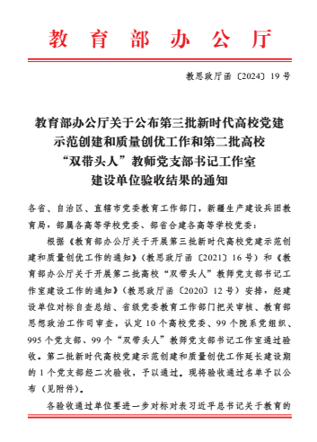 近日,教育部办公厅公布了第三批新时代高公司党建示范创建和质量创优工作验收结果,PA视讯官方网站机设系党支部顺利通过验收。