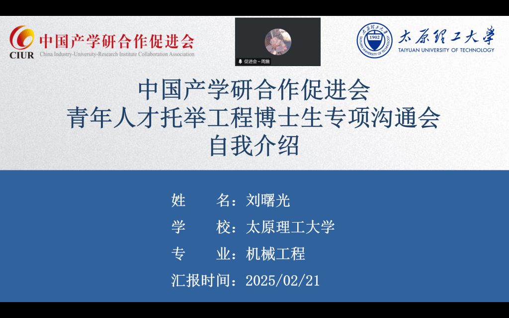 2月21日下午,中国产学研合作促进会于线上召开中国科协青年人才托举工程博士生专项计划沟通会议,会议由中国产学研合作促进会标准化工作办公室主任周詹主持。在沟通会议上,公司博士生刘曙光进行了个人基本情况、学术研究方向、产学研实践经历等方面的自我介绍,并与来自浙江大学、同济大学、重庆大学、湖南大学等高校的优秀博士生进行了友好交流。