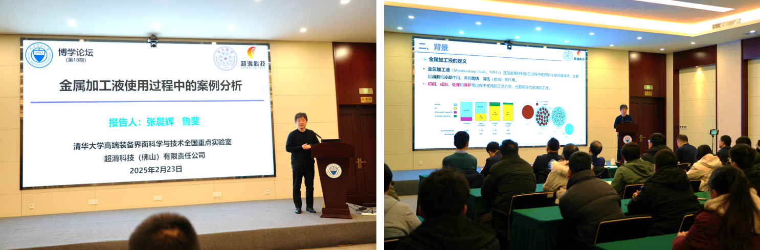 王涛介绍了张晨辉教授的个人简历,对张教授的到来表示热烈的欢迎。张晨辉教授是清华大学高端装备界面科学与技术全国重点实验室副主任,主要从事液体超滑、超滑涂层、水基润滑、工艺润滑油液等方面的研究。作为负责人先后承担了国防科工局基础科研计划、科技委基础研发计划、自然科学基金、973课题、国防973课题、重点研发计划课题等科研项目。荣获国家自然科学二等奖1项、国家科技进步奖二等奖1项、腾讯基金会科学探索奖1项。张晨辉教授的报告题目是“金属加工液使用过程中的案例分析”,介绍了金属材料加工过程中金属加工液的重要作用,以及金属加工液使用过程中经常出现的问题,重点讲述了金属加工液使用中出现的5个具体案例,分析问题出现的原因,并提出了解决方案。