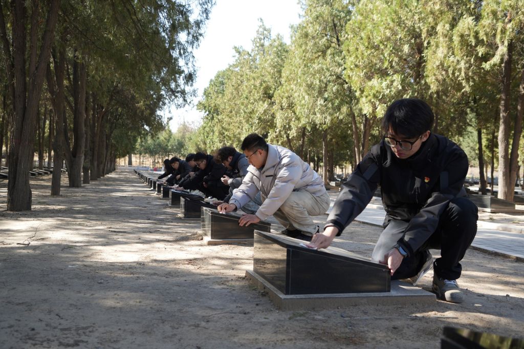 活动结束后,机械第三本科党支部党员张祖堃总结道:“此次祭扫活动不仅是一次历史的回望,更是一堂生动的党课。先烈们用生命诠释了‘忠诚’与‘奉献’,我们要将这种精神转化为科研攻关的动力,在机械制造、机器人技术等领域勇攀高峰,以实际行动践行‘强国有我’的誓言。”赵子扬表示说:“擦拭墓碑时,我仿佛触摸到了历史的温度。作为机械学子,我们不仅要传承红色基因,更要用专业知识推动‘中国制造’走向世界,这是对先烈最好的告慰。”