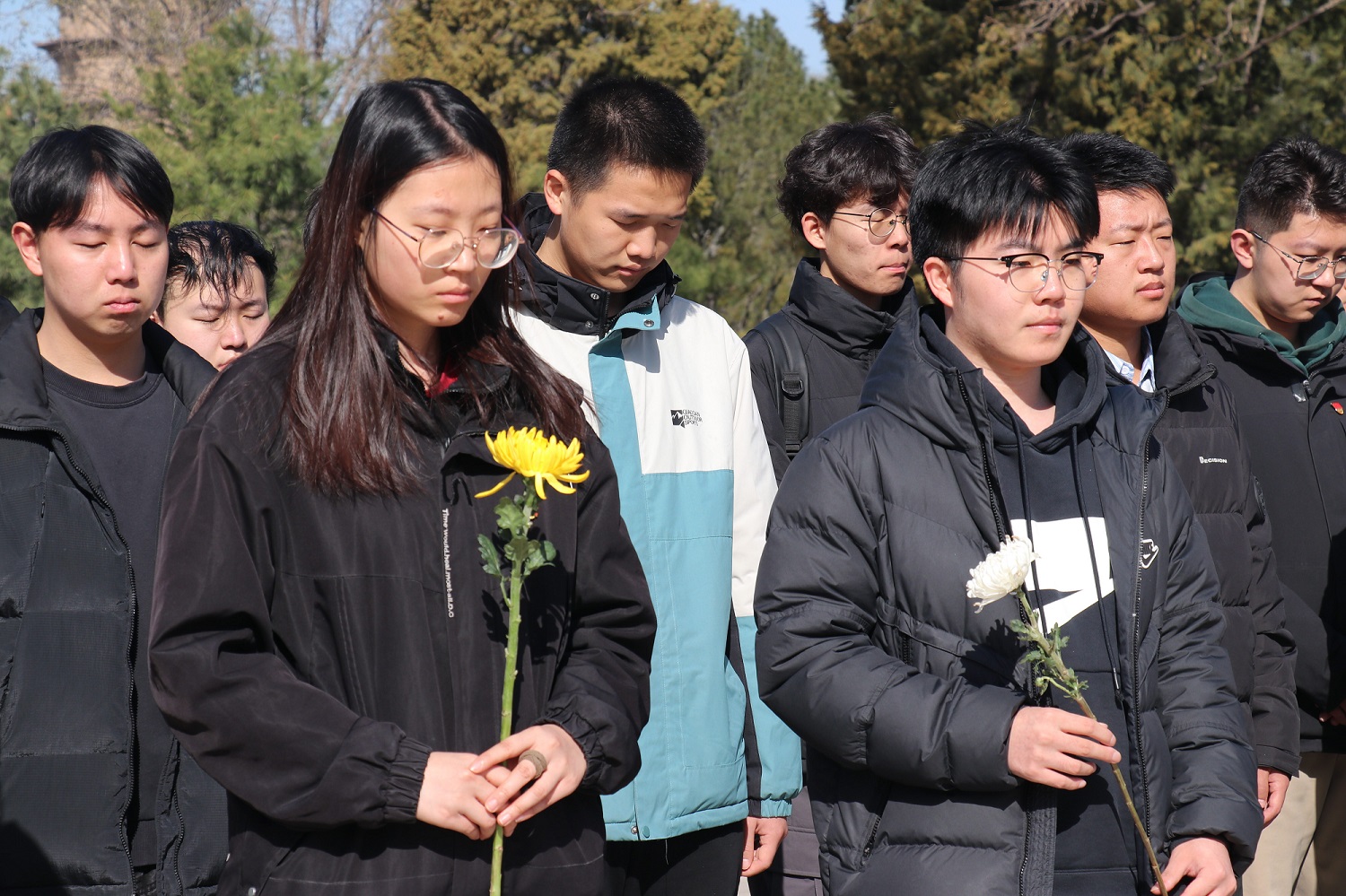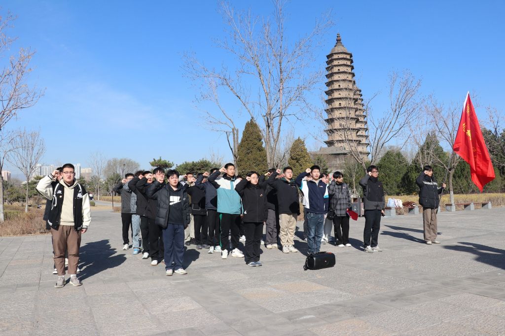以行动致敬英烈,以初心赓续使命。上午9时,全体师生肃立于高君宇烈士雕像前。在庄严的国歌声中,师生们齐声高唱,目光坚毅。随后,全体党员在领誓老师的带领下高举右拳,重温入党誓词:“我志愿加入中国共产党,拥护党的纲领,遵守党的章程,履行党员义务,执行党的决定,严守党的纪律,保守党的秘密,对党忠诚,积极工作,为共产主义奋斗终身,随时准备为党和人民牺牲一切,永不叛党。”铿锵有力的誓言回荡在陵园上空,党员们神情肃穆,字字千钧,展现出新时代青年党员对党的忠诚与担当。仪式结束后,跟随讲解员来到七烈士陵墓前。陵园内松柏苍翠,墓碑静立,无声诉说着革命年代的峥嵘岁月,讲解员深情讲述了七烈士为解放事业英勇就义的事迹,全体师生向革命先烈集体默哀,同学们轻轻擦拭墓碑,碑文上的尘土被轻轻拂去。正是无数革命先烈用鲜血染红了旗帜,用血肉筑起了长城,用生命换来了胜利。他们为了民族独立、人民解放、国家富强,矢志奋斗、英勇牺牲,以热血谱写了壮阔的红色史诗。随后大家列队献花,深深鞠躬。一束束黄白菊花在春风中摇曳,寄托着后辈对英烈的无尽哀思。