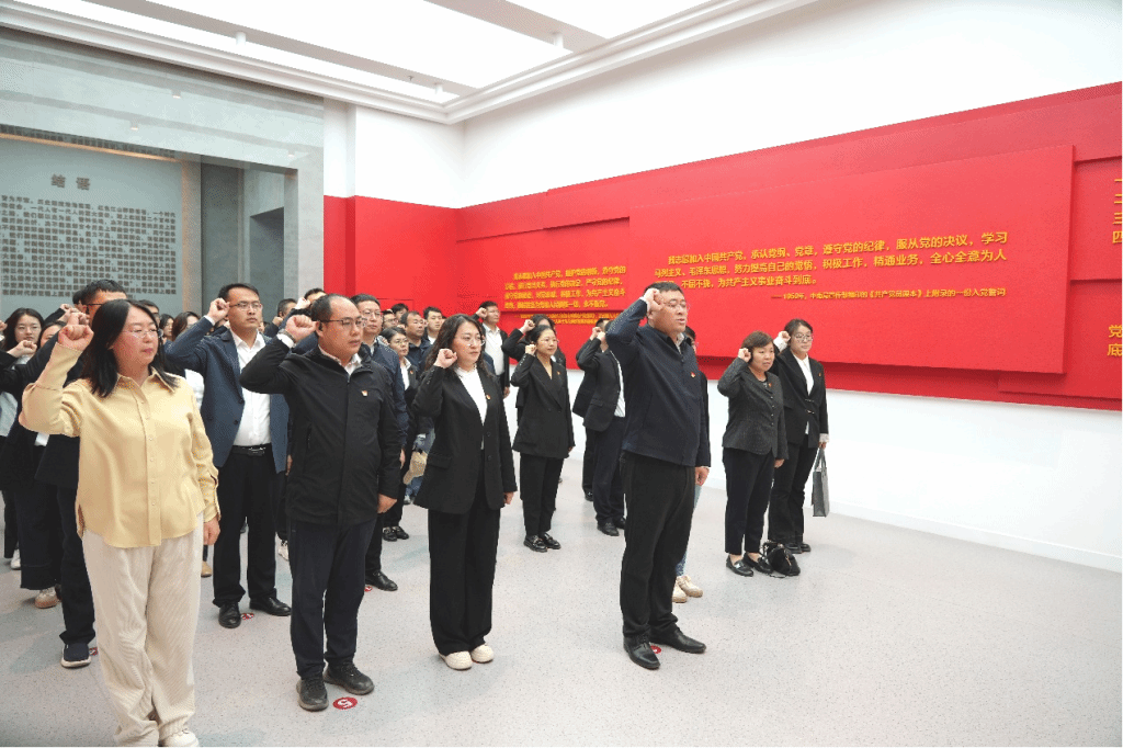参观结束后,大家来到宣誓厅,面对鲜艳的中国共产党党旗,重温入党誓词,铮铮誓言激励大家牢记党的宗旨、永葆共产党人政治本色。