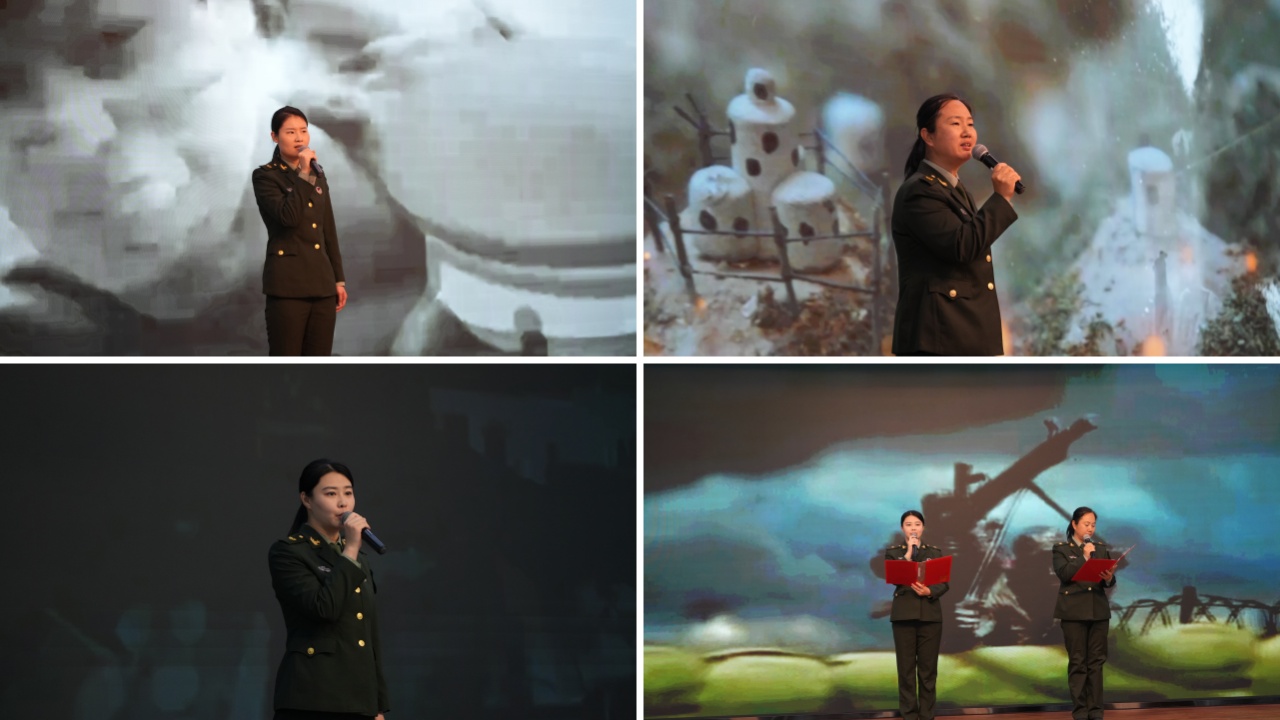 最后,张超与马永欣共同献上诗歌朗诵《英雄》,以铿锵之声赞颂英雄精神,将现场气氛推向高潮。朗诵声落,报告厅内掌声雷动,师生们用最真挚的敬意回应这场精神洗礼。