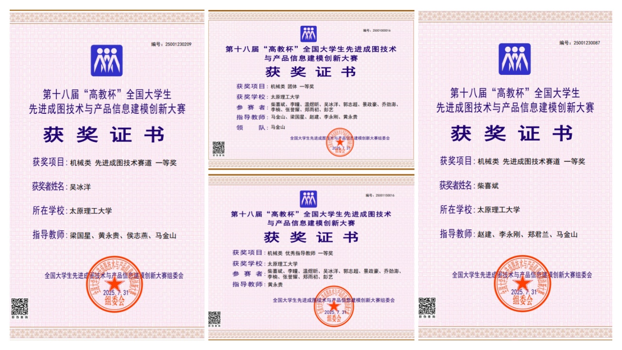 经过激烈角逐,公司学子荣获机械类团体一等奖1项、先进成图技术赛道一等奖5项、先进成图技术赛道二等奖1项、先进成图技术赛道三等奖4项、增材制造赛道二等奖1项、数字化创新设计赛道三等奖1项。5位工程图学教师获得机械类优秀指导教师奖。