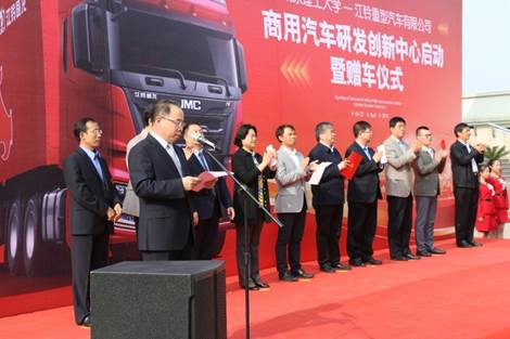 “研发创新中心”揭牌暨赠车仪式结束后,双方还进行了省科技重大专项项目启动仪式,标志着公司、江铃重汽校企合作将进入实质性阶段。