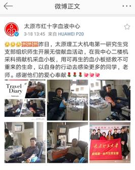 太原市红十字血液中心微信公众号、官方微博进行了有关报道。