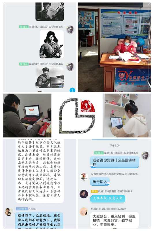 螺丝钉之家团支部的马钰淇分享了自己在太原市小店区平阳路街道办事处参加抗“疫”志愿服务的经历,她提到“作为一名入党积极分子,作为一名螺丝钉,能够和社区的基层工作者们一起参与疫情防控,打电话、录系统,监督返并人员居家隔离,用心守护每一户辖区居民的安危,尽己所能为人民服务,我感到无尚光荣。”螺丝钉之家项目一部的王元成来自我省疫情最严重的平遥县,身为一名螺丝钉,他在第一时间响应村委会的号召,投入到疫情防控志愿服务中,承担起记录村民身体健康状况、协助发放救灾物资等工作中,用实际行动践行着雷锋精神。