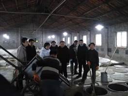 在位于汾阳市的山西杏花村汾酒股份有限公司酿酒六厂,在厂长李程武,副厂长李海斌的陪同下,调研组详细了解了汾酒酿酒基地刚刚投产使用的两条自动化酿酒生产线的设计、集成与生产工艺流程。在位于孝义市的山西杏花村汾酒厂汾青有限公司,在武维峰书记,王庆国副厂长的陪同下,调研组进入传统工艺手工班生产车间,仔细调研了固体醅、地缸、分楂发酵、不接触泥土、清蒸二次清等传统酿酒生产工艺特点。双方在酿酒设备的技术升级方向上达成共识,让“传统工艺更传统、现代技术更现代”,在保持传统酿造工艺的同时,通过设备与技术升级,减轻员工劳动强度,提高生产率,保证汾酒基酒一流品质。