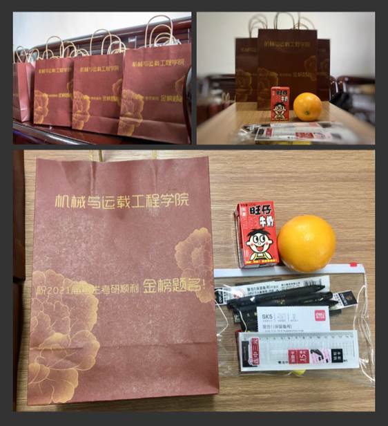 寒风凛冽时,温情暖人心。活动结束后,老师们走进员工宿舍,陆续为500余名机械学子送去精心准备的考研助力福袋,希望大家“脐”开得胜,心想事“橙”,“牛”气冲天。