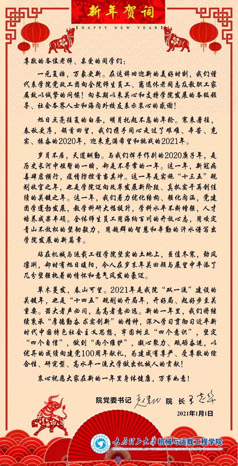 机械与运载工程公司2021年新年贺词