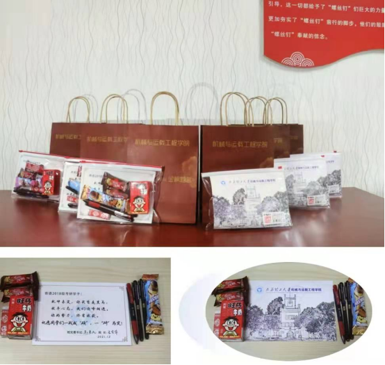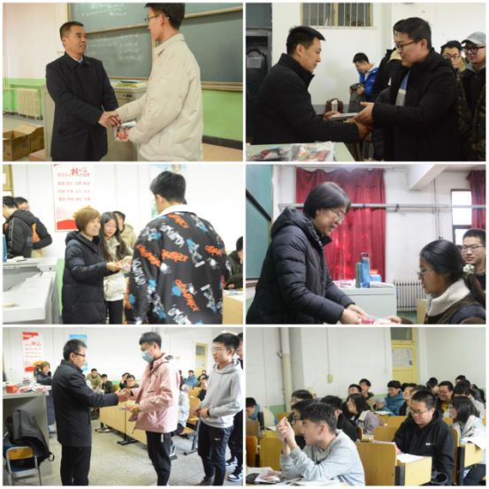 2021年12月16日、17日,机械与运载工程公司党政领导、毕业生辅导员前往各专业教室,在寒冷的冬日,为2018级共574名考研学子送上加油礼包,传递温暖和祝福。