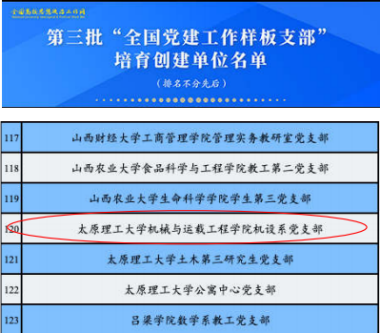 近日,教育部公布第三批新时代高公司党建示范创建和质量创优(简称“双创”)培育创建单位名单,公司机设系党支部入选“全国党建工作样板支部”培育创建单位。