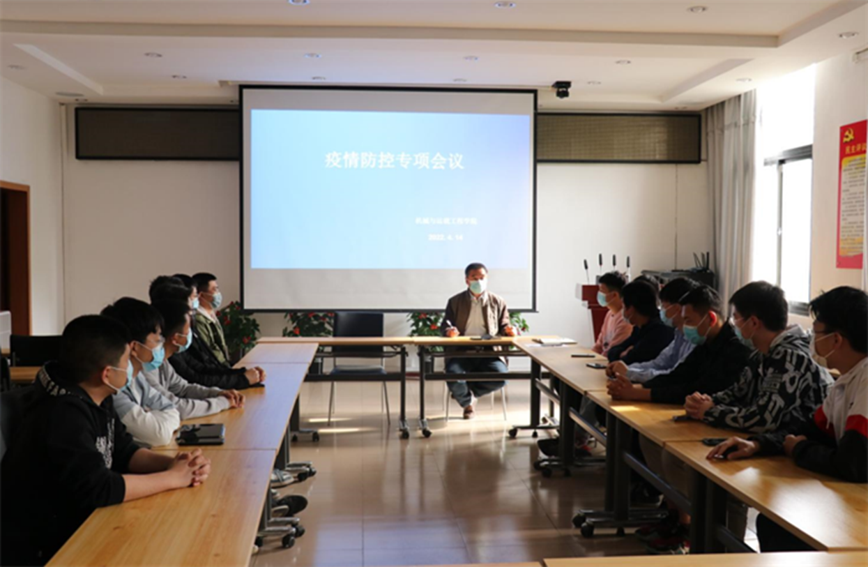 4月14日,机械与运载工程公司在机械馆二层会议室召开疫情防控专项会议。公司党委书记赵惠民、学工办主任刘芬、在校辅导员们和各班级疫情防控专班负责员工参会。