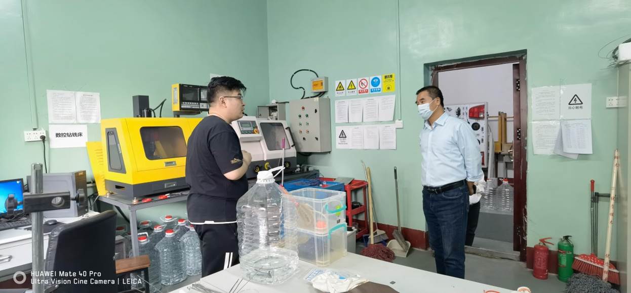 检查中,赵惠民书记特别指出,要严格落实公司召开的《实验室安全专题工作会》和校国资处《关于开展疫情封控期间实验室安全检查的通知》的精神。对于指导老师不在场,无人管理的实验室;对于危险系数较高,且指导老师不在场的实验项目要立即停止实验。同时,要严格实施拟正常开放实验室(研究生工作室) “动态报备”制度。
