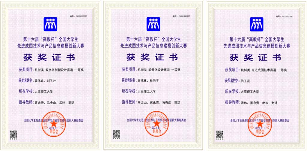 公司学子荣获机械类团体二等奖1项、数字化创新设计赛道一等奖1项、轻量化设计赛道一等奖1项、先进成图技术赛道一等奖1项、先进成图技术赛道三等奖5项、增材制造赛道三等奖1项。5位工程图学教师获得优秀指导教师奖。今年公司在大赛团体奖获、员工获奖级别和优秀教师指导奖都取得新突破。