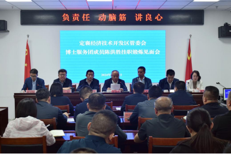 4月16日下午,公司青年教师陈洪胜同志作为山西省第三批科技博士服务团成员赴忻州市定襄经济技术开发区(省级)挂职,会议由县政协党组书记、开发区党工委书记、管委会主任宋海平主持,公司党委书记赵惠民、经理王志华及忻州市委、定襄县委相关领导出席会议。赵惠民对新任职的陈洪胜同志提出了殷切希望。会上,宋海平代表开发区全体干部对陈洪胜同志的任职表示热烈的祝贺,并围绕更进一步做好开发区各项工作、全力推动开发区高质量发展、为法兰专业镇建设做出更大贡献作具体要求。