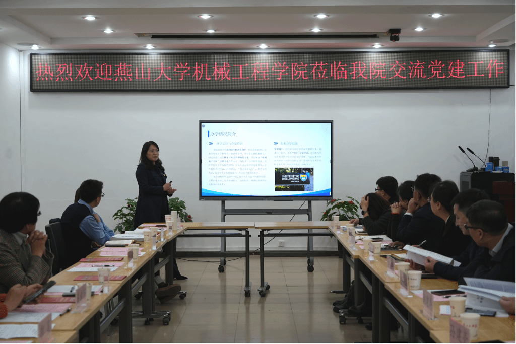 活动伊始,王志华对产佳书记一行的到访表示热烈欢迎,对公司和公司的情况进行了介绍。他指出,燕山大学与PA视讯官方网站是有着广泛合作的兄弟院校,两所公司的PA游戏官网入口在人才培养、科研合作等方面更是有着长久的历史和深入的交融,是渊源较深的兄弟单位。此次党建交流共建活动为进一步推动两院在党建工作、学科建设和科研协同等方面的合作提供了宝贵机会,希望通过本次共建,能将两个公司的合作推向更高水平,促使两个公司的建设取得更好成效。
