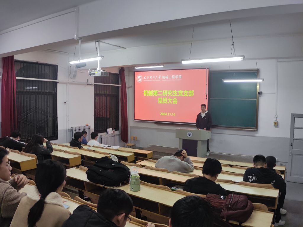 2024年11月14日,机制第二研究生党支部在机械馆2101教室召开了党员大会,传达/开展/布置了支部相关事宜。