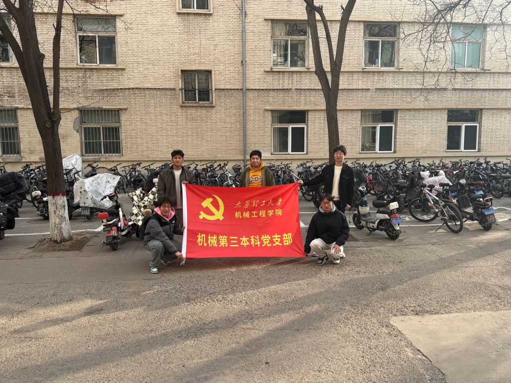 春风拂面,雷锋精神在新时代的征程中熠熠生辉。为深入学习贯彻习近平总书记关于弘扬雷锋精神的重要指示,进一步增强党员和入党积极分子的社会责任感和奉献精神,在第62个“学雷锋纪念日”到来之际,机械第三本科党支部于3月3日开展了“学雷锋·文明校园我行动”主题志愿服务活动。本次活动以整理校内乱停放自行车为主要内容,通过实际行动美化校园环境,传播文明出行理念,让雷锋精神在新时代绽放更加耀眼的光芒。