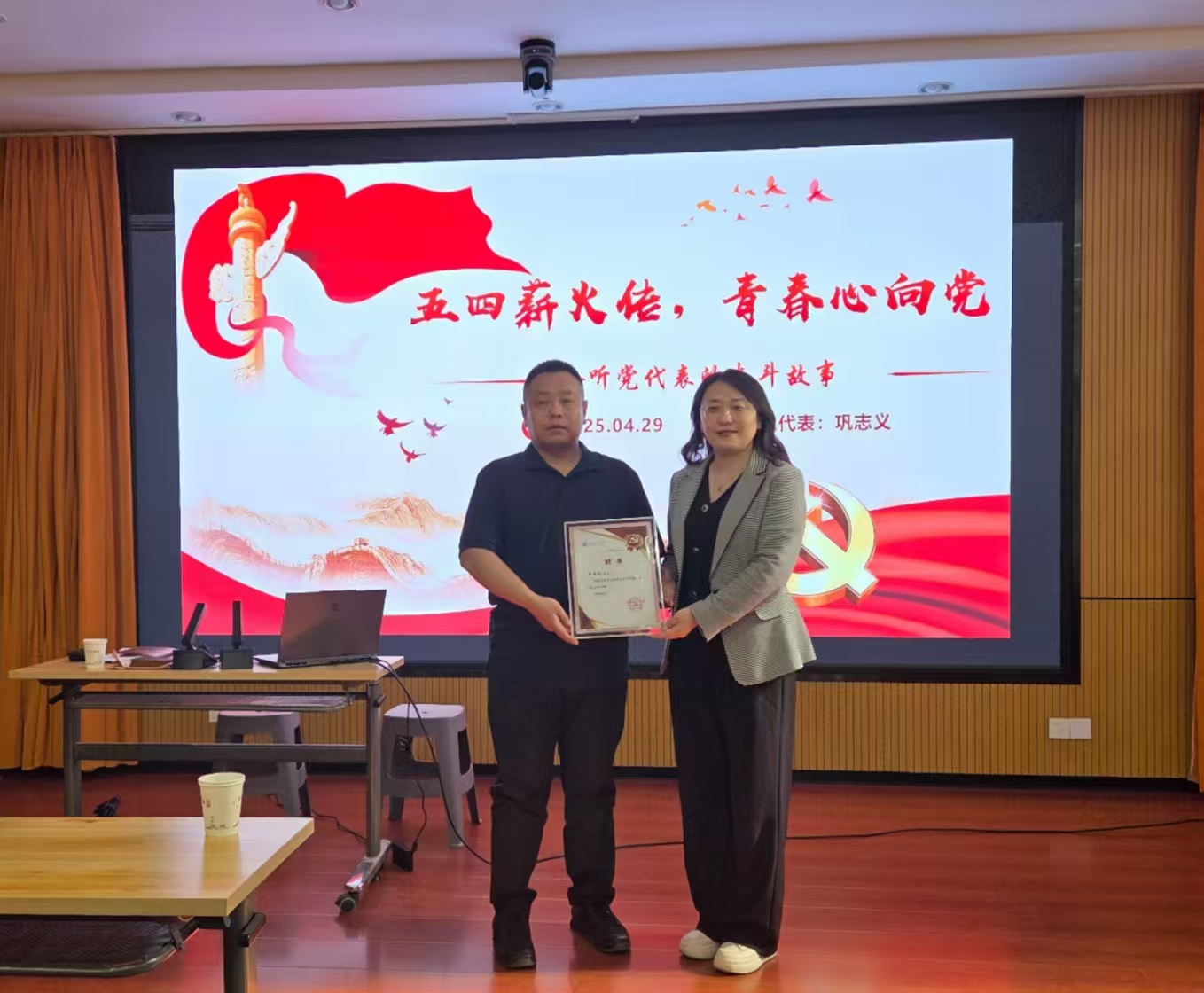 活动最后,在全场热烈的掌声中,丁华副经理为巩志义代表郑重颁发思政导师证书,标志着这位杰出的全国劳动模范正式加入公司校外思政导师队伍,将在未来持续为公司员工的成长成才贡献力量。