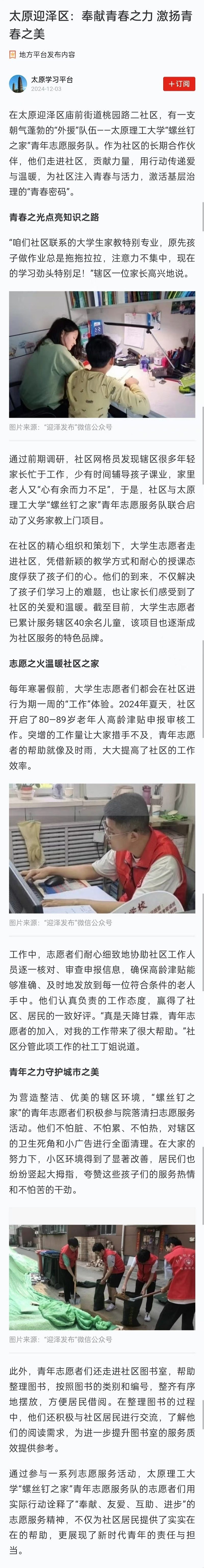 太原迎泽区:奉献青春之力 激扬青春之美