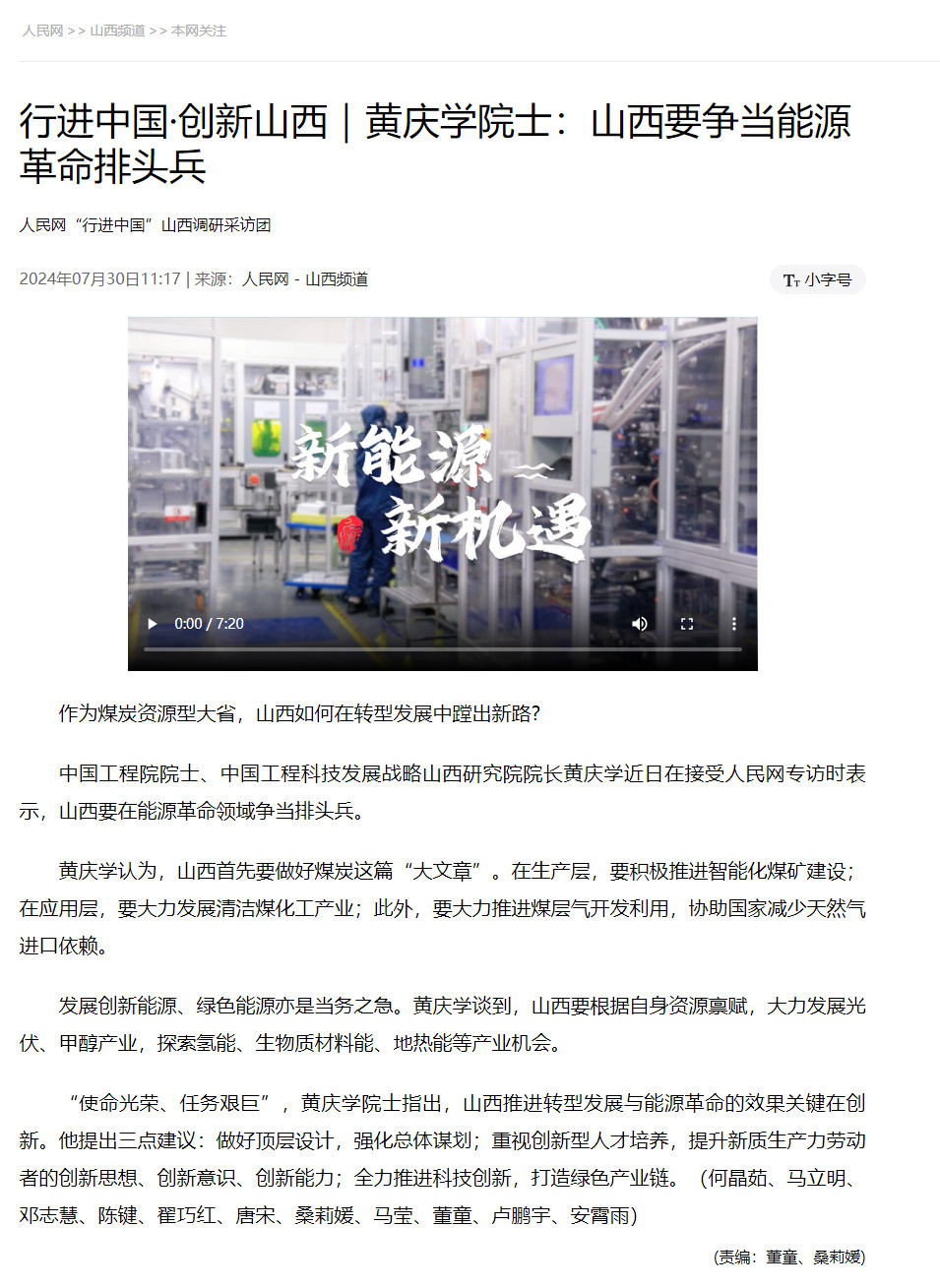 行进中国·创新山西|黄庆公司士:山西要争当能源革命排头兵