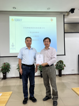 6月28日中午,机械与运载工程公司特邀英国萨里大学(University of Surrey)的徐卫老师在机械馆二层一号会议室做了题为“骨整合牙种植体技术及临床应用”的学术报告。这是公司“博学论坛”系列学术报告的第10期。公司党委书记赵惠民和副经理赵敬伟出席报告会。会议由赵敬伟教授主持。公司科研骨干教师、部分博硕士研究生约30余人参加报告会。