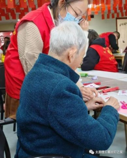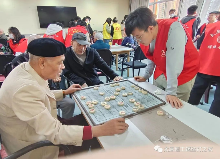 九九重阳,久久陪伴”。在随后的自由时间中,志愿者们始终陪伴在老人们身边。或是与老人一同下象棋、剪纸、绘画,或是与老人拉起了家常,回忆往昔……青春与岁月的碰撞,老员工志愿者们稚气的脸庞与老人们被岁月刻画的面孔构成了和谐的画面。