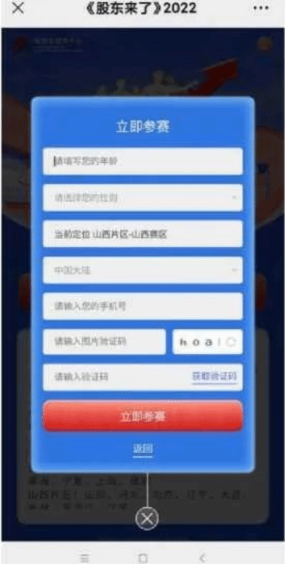 6.输入收到的短信验证码后, 点击“立即参赛”按钮完成注册。